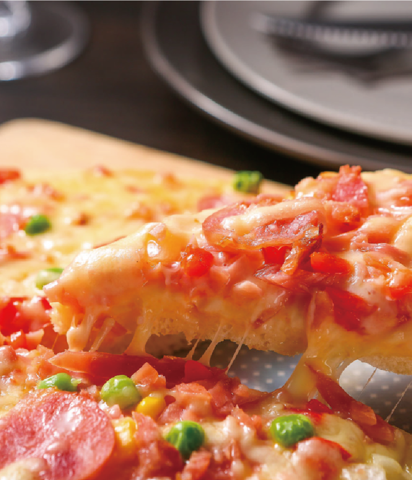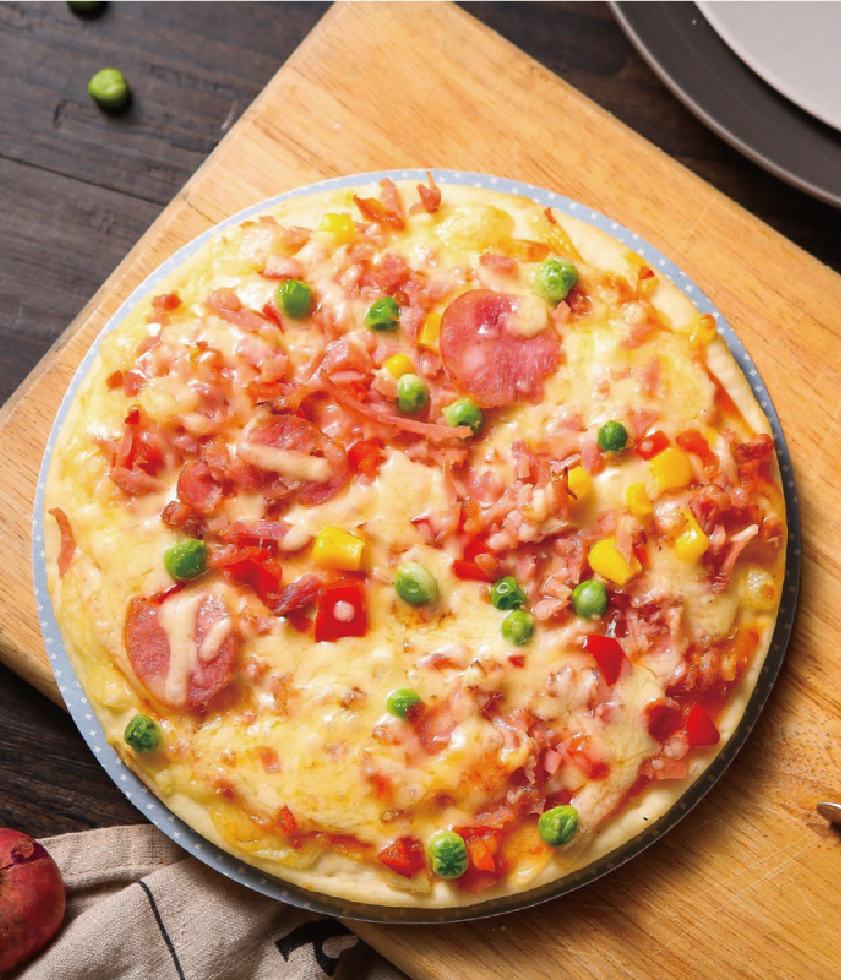 產(chǎn)品介紹:香葷乳酪匹薩——火腿、臘腸、培根,看著就叫人口中生津,搭配青豆、洋蔥、紅椒、玉米,佐以酸甜可口的番茄醬,奶香濃郁的芝士,和精心調(diào)配的香料,咬下去滿(mǎn)口肉香。