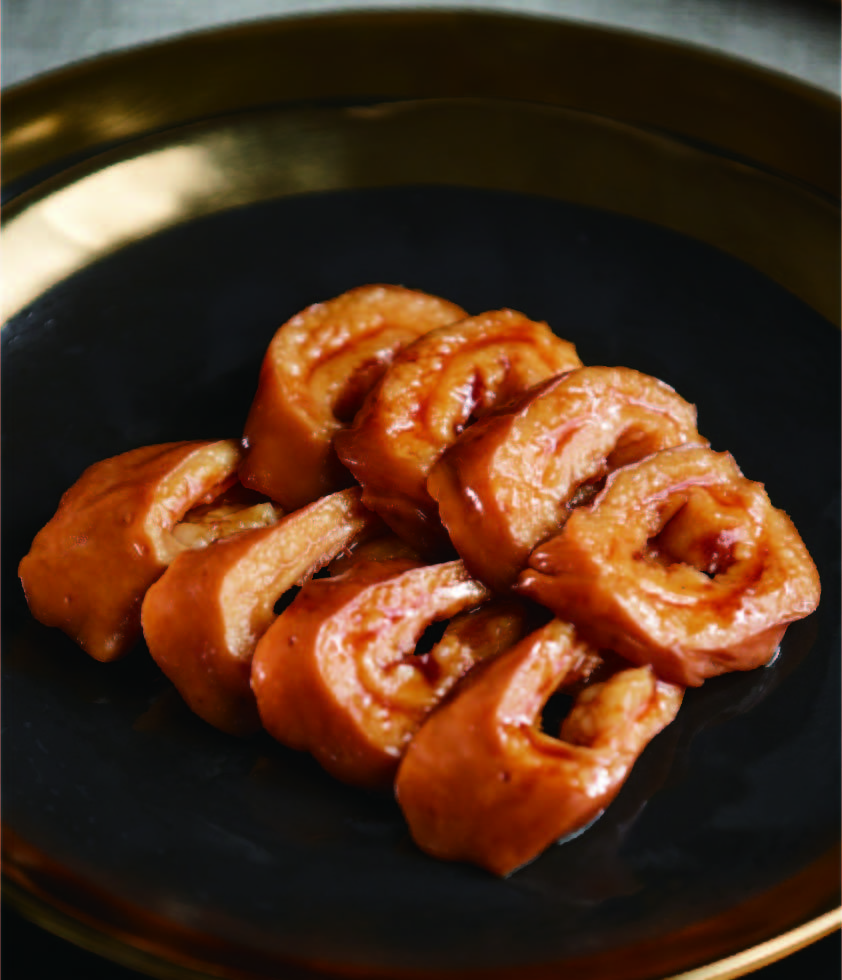 產(chǎn)品介紹:潮州鹵肥腸——九轉(zhuǎn)十八彎中的人間至味。潮香村只選用大腸頭部位置的25~30公分入料,因?yàn)樗穸确剩瑝蜍浥矗朔誓c爽口,鹵香味怡人! 工藝:陳鹵鹵制 規(guī)格(g):500g 包裝規(guī)格:500g/袋 箱規(guī):無
