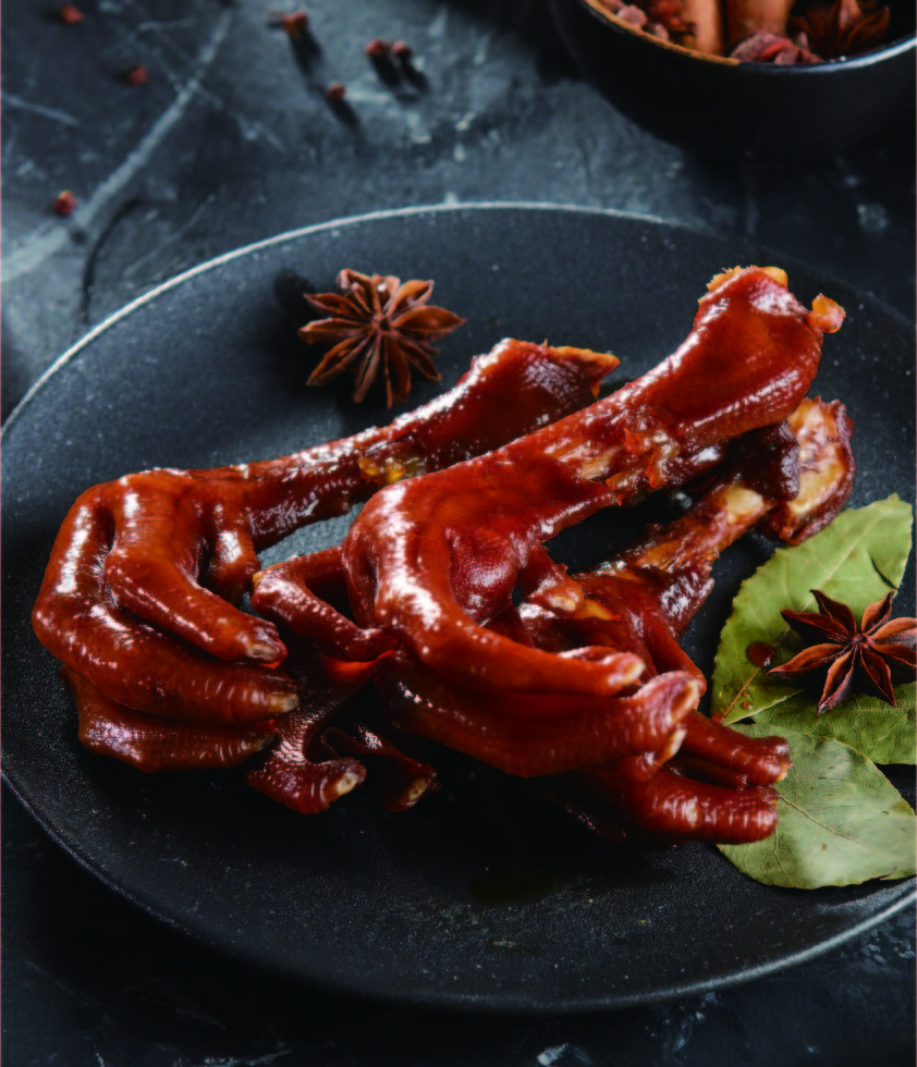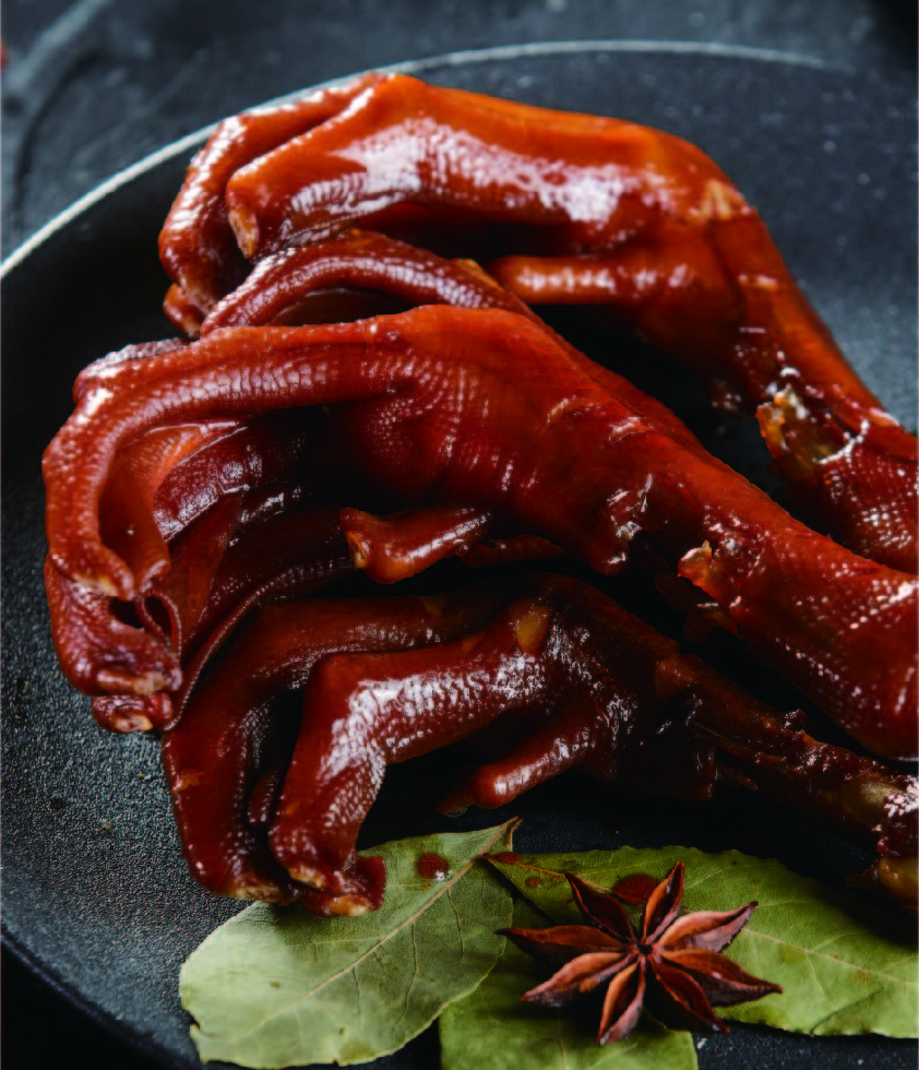 產(chǎn)品介紹:潮州鹵鴨掌——選用新鮮上好鴨掌,色澤紅亮,香味濃郁,皮軟肉酥,越嚼越香,百年經(jīng)典美味傳承,親友團(tuán)聚,佐酒小酌首選佳肴。 工藝:陳鹵鹵制 規(guī)格(g):500g 包裝規(guī)格:500g/袋 箱規(guī):無